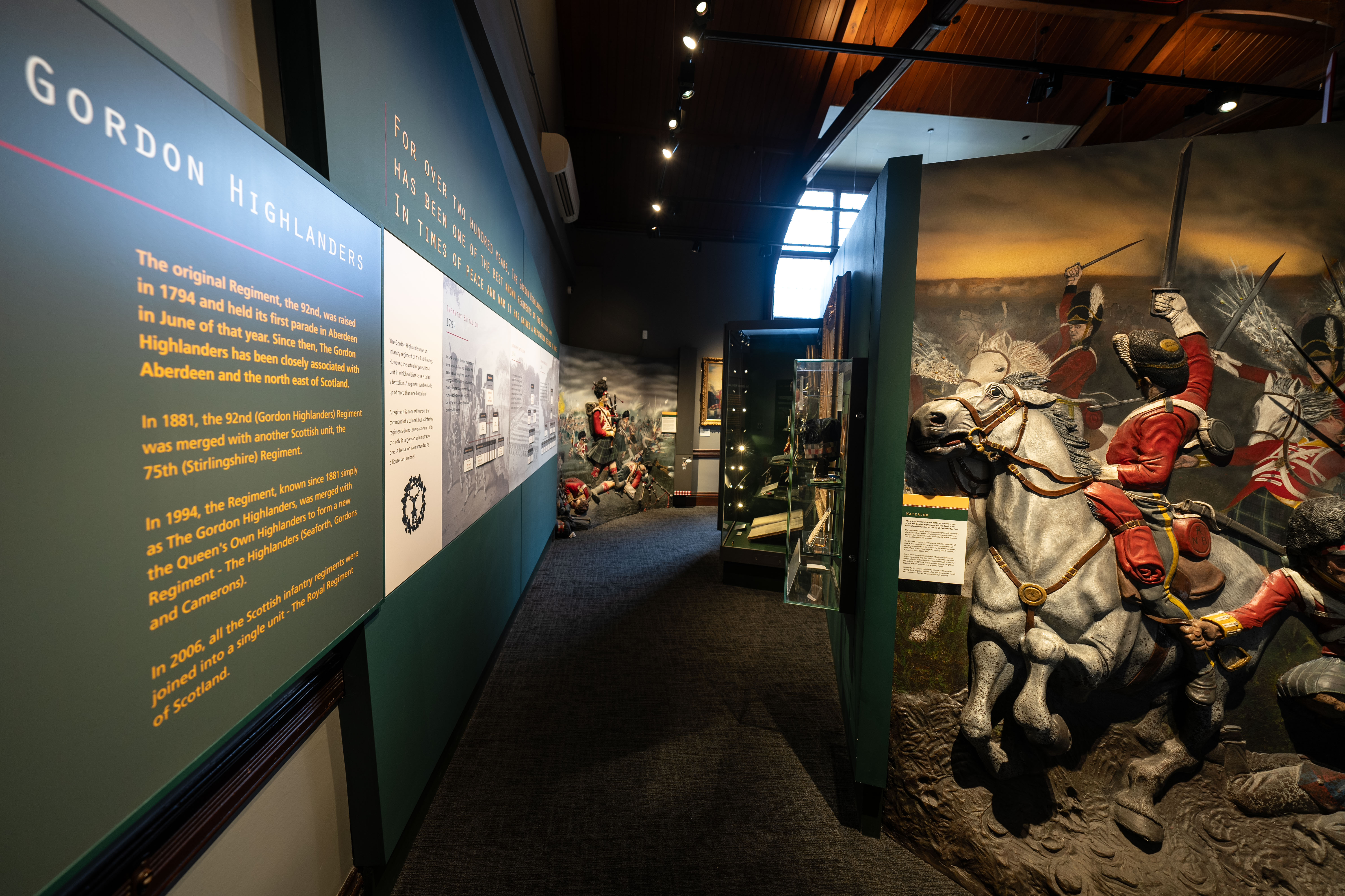 The Gordon Highlanders Museum is housed over two floors: The Café, Shop, Welcome Desk, Cinema, Grant Room and Regimental Gallery are located on the ground floor. The Armoury, Silver Room, Temporary Exhibition Space and Regimental Dining Room are on the lower ground floor and are accessible via stairs or lift. The Silver Room and Regimental Dining Room has stepped access. Most areas are accessible for prams, pushchairs, manual and electric wheelchairs.