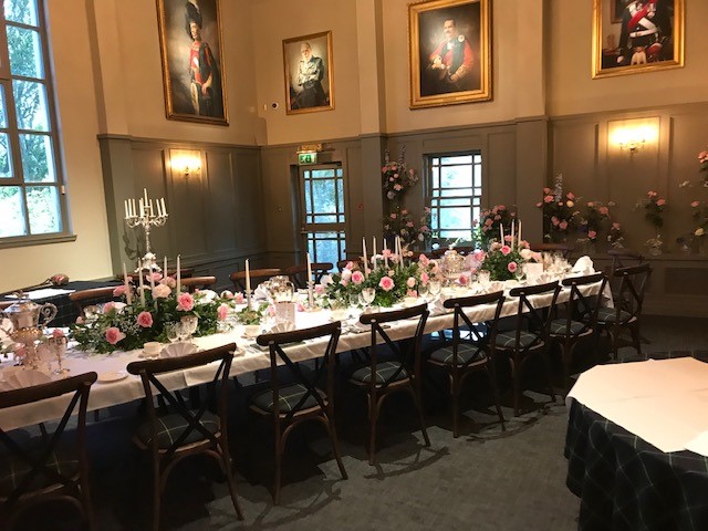The Regimental Gallery is our largest wedding room which can hold both your ceremony and reception. The Gallery is filled with striking portraits of some of the most famous Gordon Highlanders in the Regiment’s history, adding to the deep history and visuals of the room. The beautiful arched window and use of Original Regimental Silver create an outstanding atmosphere.
